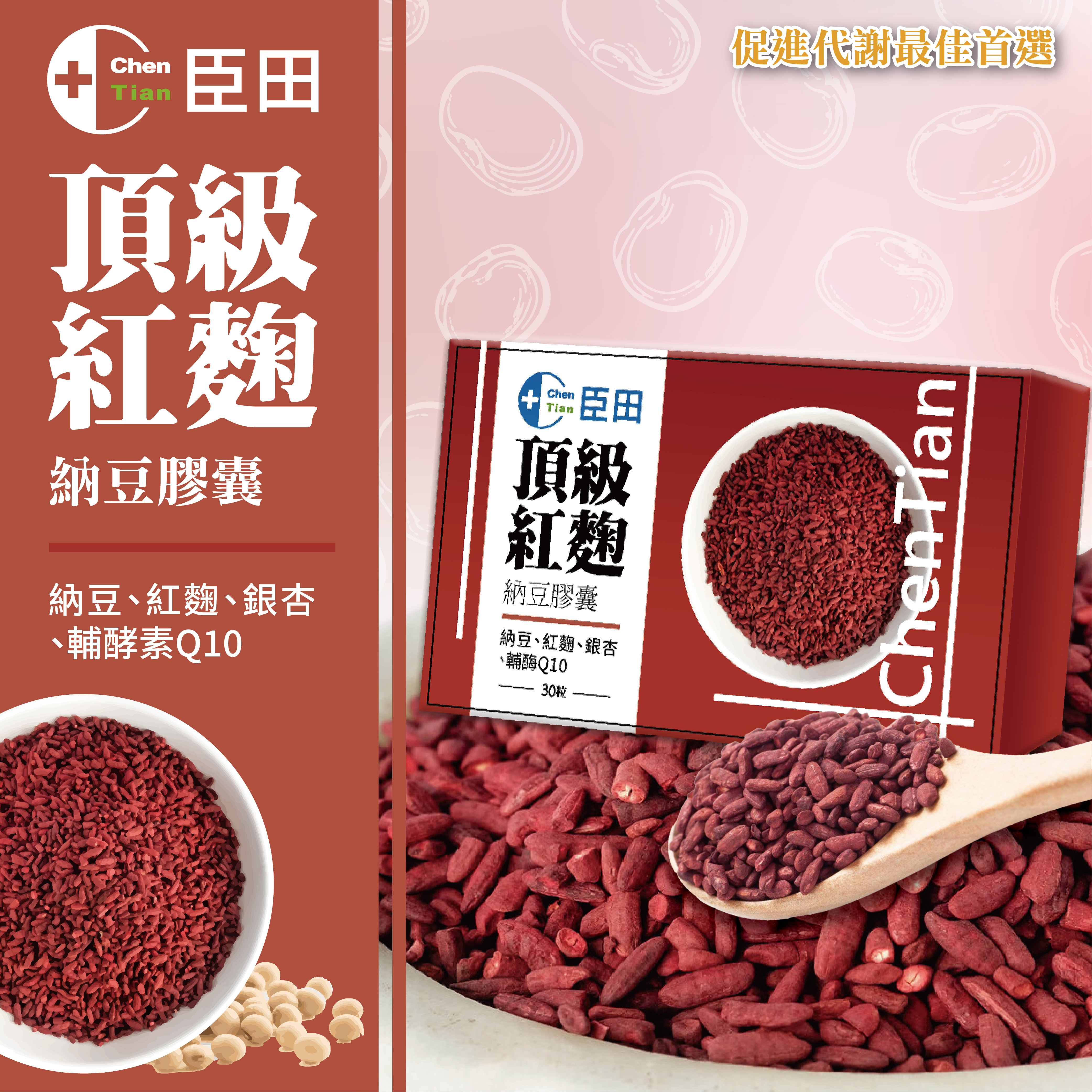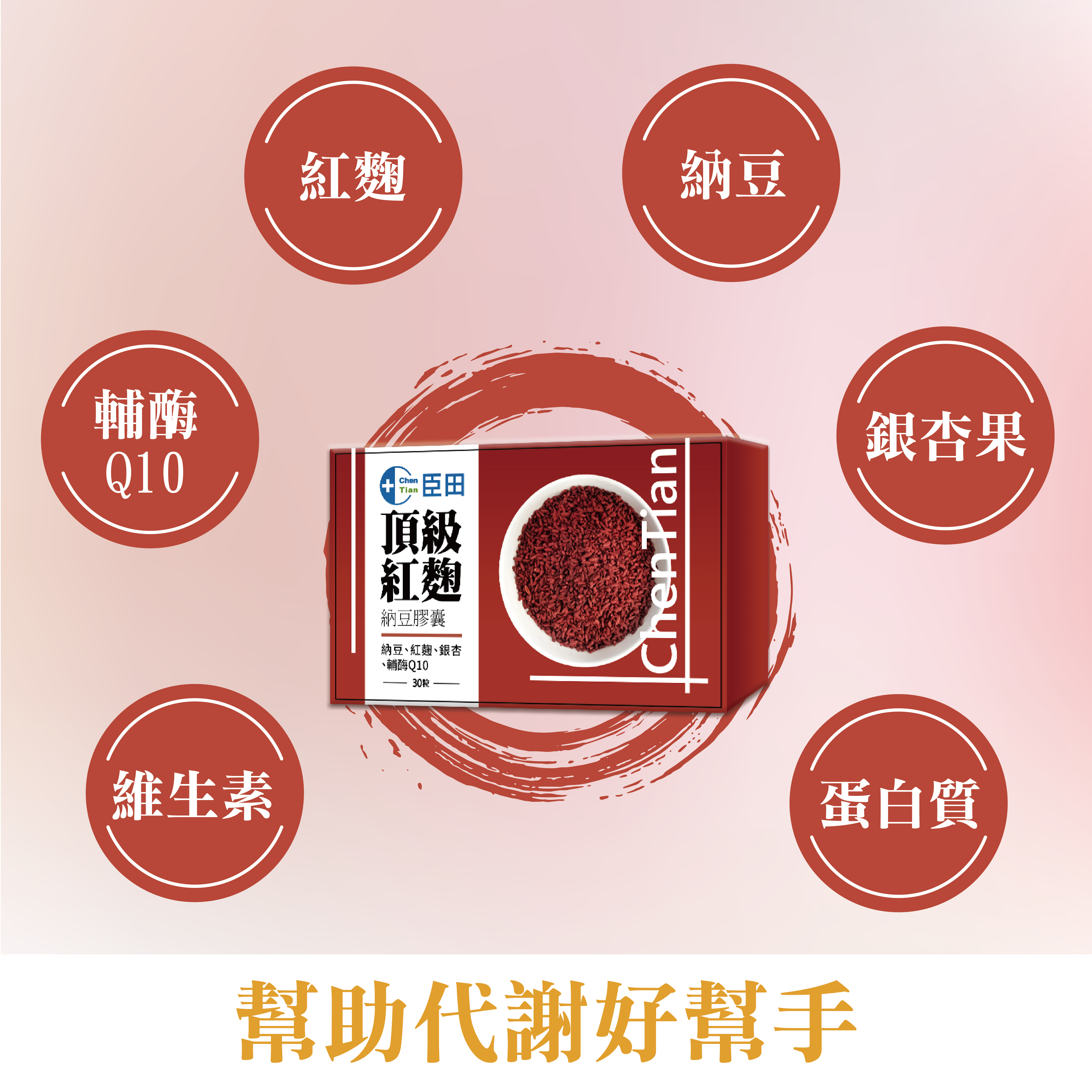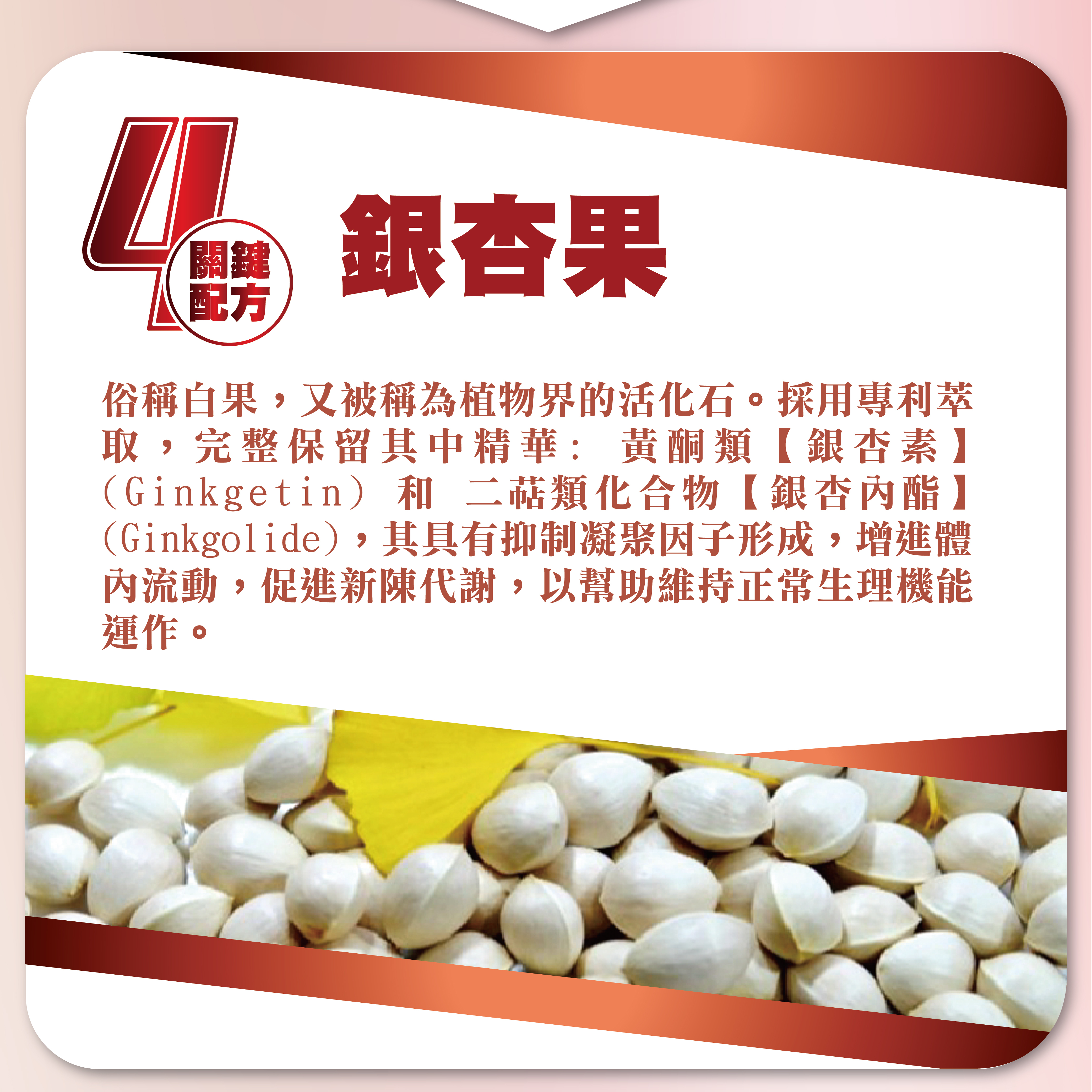 ●四大關鍵配方:紅麴、納豆、輔酶Q10、銀杏果