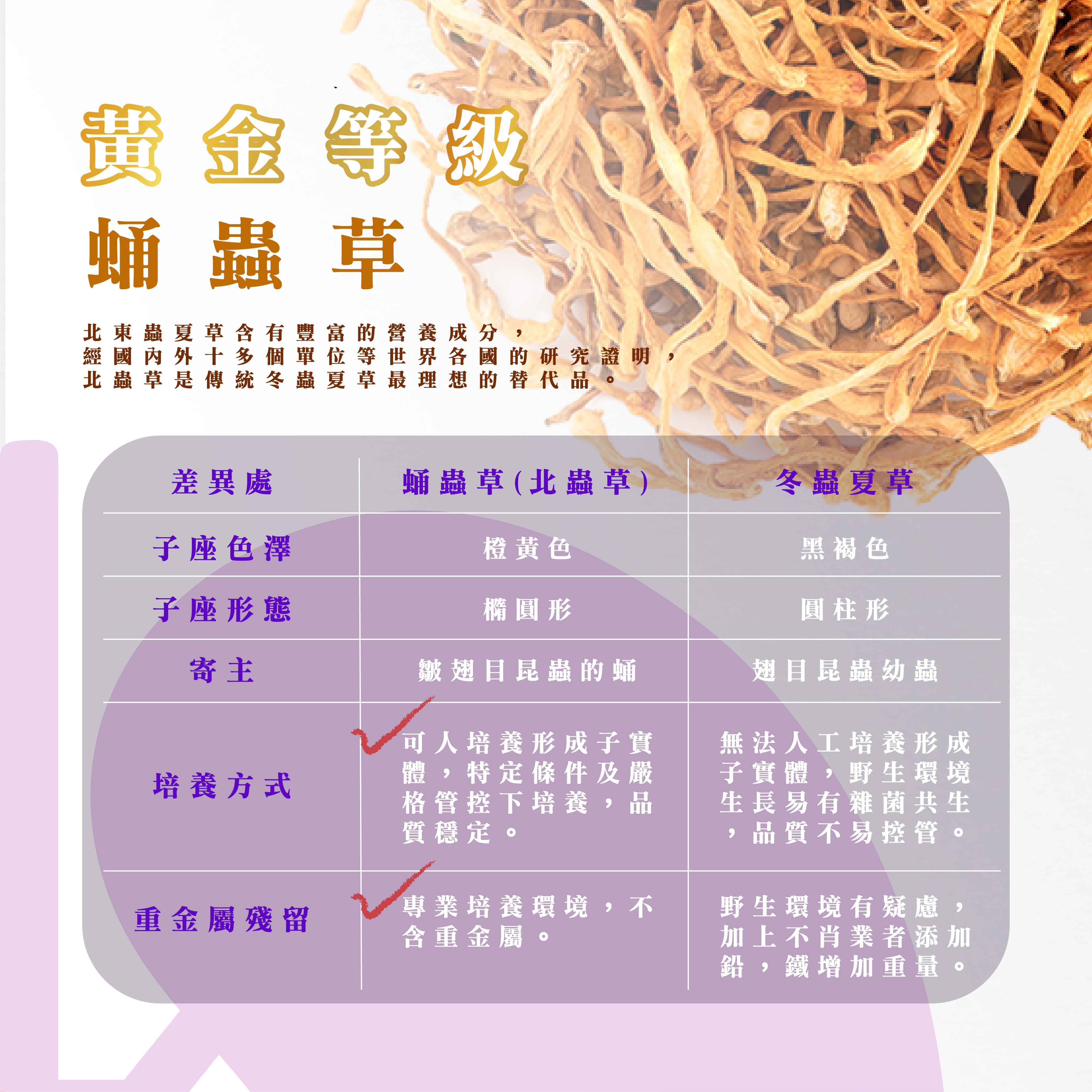 ◆黃金等級北蟲草來源,人工可控培養環境,不含重金屬殘留